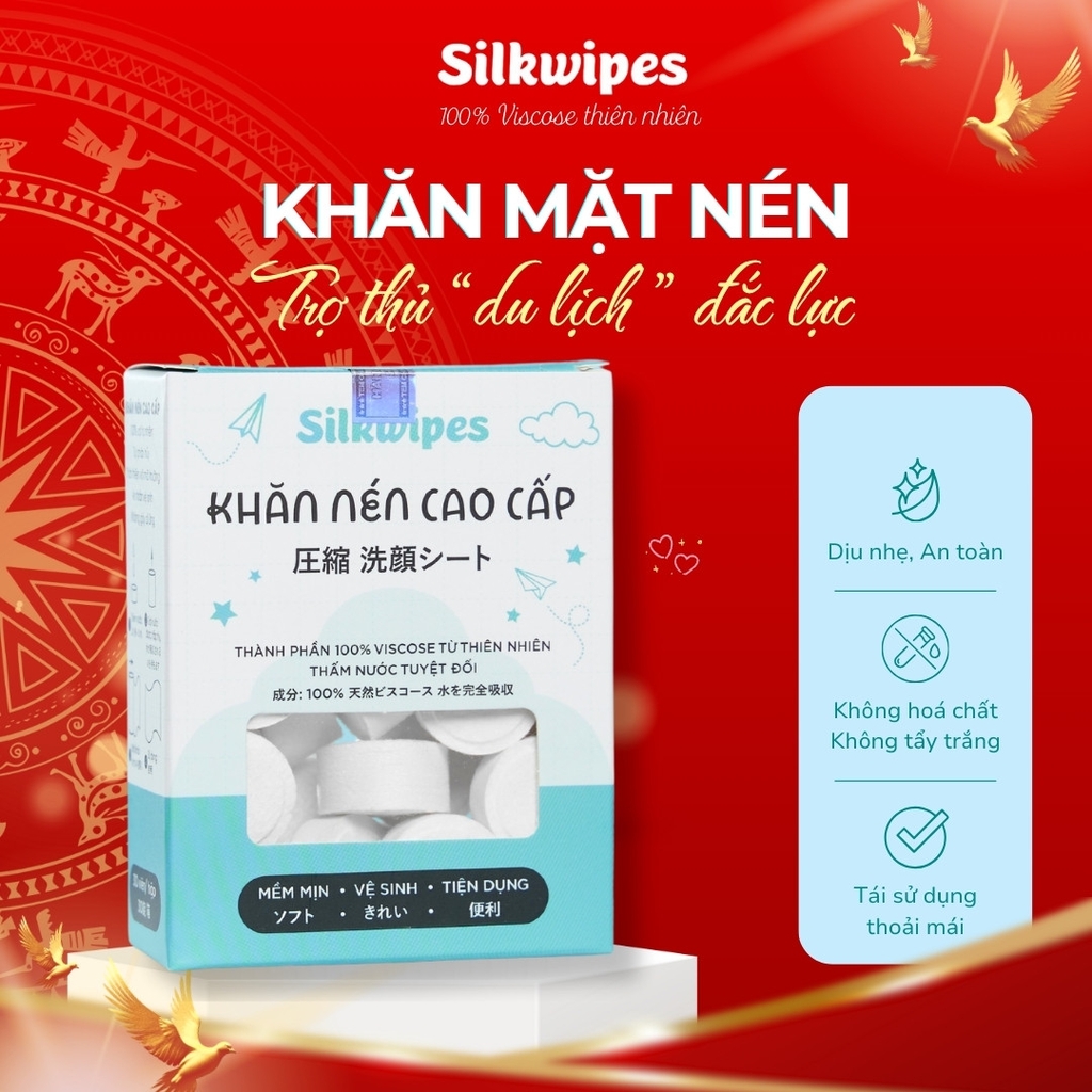- Khăn nén Silkwipes an toàn với da do khăn được nén ở dạng khô và được đóng trong bao bì đạt tiêu chuẩn nên hoàn toàn an toàn với làn da con người.